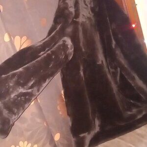 Softest plush faux fur ever. Reduced because it Has a couple minor singe /burn marks in the top layer of the plush on the edge of the hood and at the edge of one sleeve , not deep burn marks, very minor - I went over these areas with a fabric shaver very gently and its almost good as new. Not noticeable as the burn is very minor and the fabric Is dark brown after fabric shaving it's not easily seen. There is a hole inside the left pocket lining. This is also not noticeable when wearing. Super durable. I recommend dry cleaning only for this Garment.