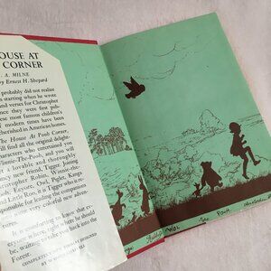 Good vintage condition hardcover The House at Pooh Corner' (Winnie-The-Pooh #2) by A.A. Milne, Ernest H. Shepard (Illustrator). A 1961 reprint with paper jacket. Some wear on the jacket, a stain and some small tears, but otherwise in good condition. Hardcover beneath has fabric cover in red and embossed illustration. For Pooh bear fans or book collectors.
