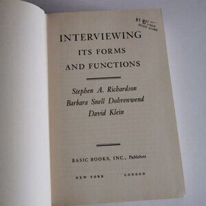 1965 Interviewing Its Form and Functions Textbook, Social Science Field Methods Observation Interviews Qualitative Data Richardson Book
