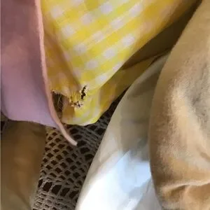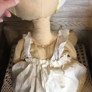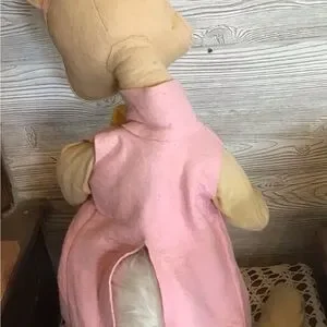 Vintage 1968 Annalee Easter Rabbits. He is 26” tall. Not perfect as a wire in his foot is sticking through material and there is some holes in gingham outfit. She is 21” in a sitting position. There is a green wood board that she was attached to leaving some holes. Missing flowers in basket. Some stains but nothing major