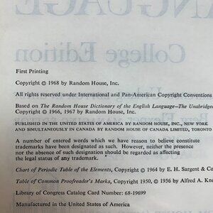 Delve into the depths of language with the 1968 Random House Dictionary of the English Language, College Edition. A true behemoth, this book is an indispensable tool for scholars, writers, and anyone with a passion for the English language. Crafted with care, the cloth-bound exterior houses an extensive collection of words, phrases, and etymologies that encapsulate the richness of English. Published by Random House in 1967, this original piece hails from the United States and stands as a testament to the enduring power of language. Whether for reference, research, or simply to cherish as a vintage collectible, this dictionary is a remarkable resource that offers a glimpse into the linguistic past while serving as a timeless reference for the present.