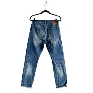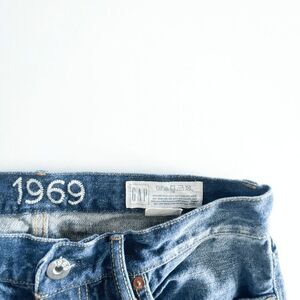 Be the definition of 70s cool and look stylish in these vintage-look 1969 GAP Men's Denim Jeans. These slim selvedge jeans feature Japanese Sashiko Patchwork Embroidery. Button fly, distressed, destroyed detail, and factory whiskering add a unique twist to these awesome jeans. Please note that the rip under the right front pocket is not patched behind it like the other rips are.