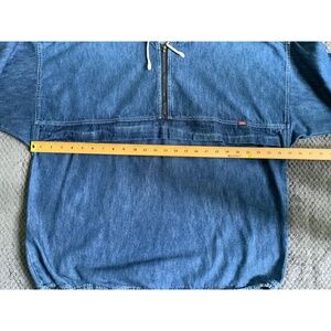 This is rare 1970 vintage pullover lightweight denim jacket is a unique piece of clothing that stands out from the more common button-down trucker jackets in the era there is no size tag , fits as a large , check measurements in the photos