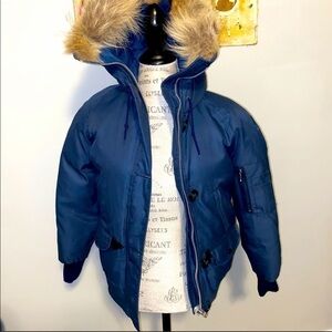 Vintage 70’s Canadian Trails Goose Down Coyote Fur Trim Blue Bomber Coat XS / S