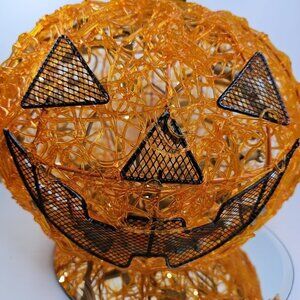 1970s Halloween Spun Spaghetti Lucite Plastic Pumpkin Jack O Lantern Read