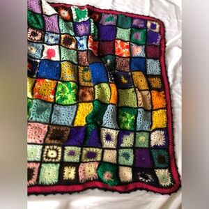 Vibrant crochet granny square blanket with a mix of colours. Perfect for adding a pop of colour to any room.