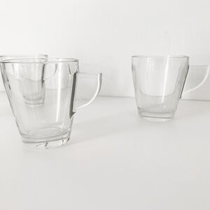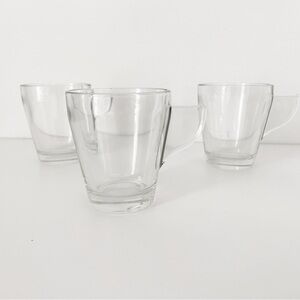 Elevate your coffee ritual with this set of five vintage-inspired glass espresso cups. Featuring a sleek, minimalist design with sturdy handles, these cups are perfect for serving espresso, macchiatos, or after-dinner coffee. Their clear glass construction adds a modern touch, allowing you to appreciate the rich color of your brew. Gently pre-loved and in great condition. A must-have for any coffee lover!