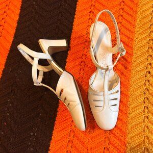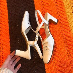 1970s Naturalizer White Leather T-bar Roman Mary Jane sandal heels- made in Canada!