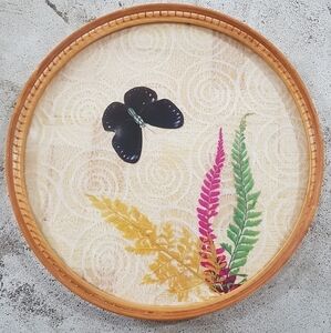 Vintage 7 piece serving set with real pressed butterflies and colorful dried flowers inlays.