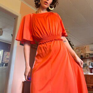 1970s Red polyester prom dress and cover up matching set - Made in Canada by Missy House!
