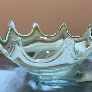 1970s Sooner Glass Multi Color Blue Swirl Swan Bowl with Ruffled Rim