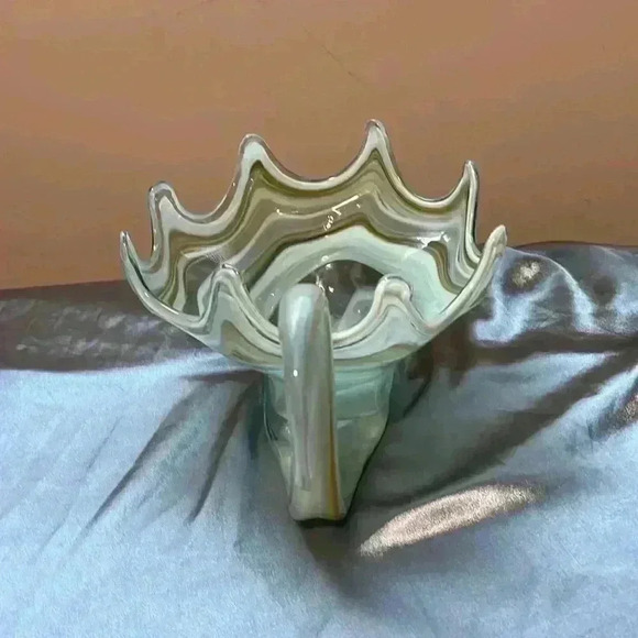 1970s Sooner Glass Multi Color Blue Swirl Swan Bowl with Ruffled Rim