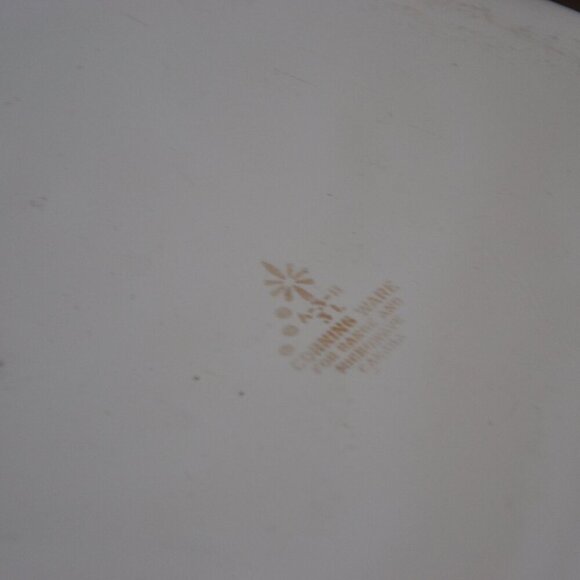 Printed on the bottom is "A-3-11(?)/ 3L/ Corning Ware/ For Range and Microwave/ Canada". Holds 3 litres.