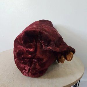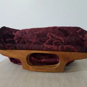 1970s Velvet Floral Bag with Wooden Handles, Vintage Velvet Bag,