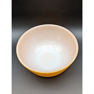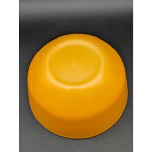 This unique and lovely primary orange Fire King fired Anchor Hocking mixing and nesting glass bowl is in good vintage condition for it's 1970's age with a minor exterior blemish. It measures 6" rim to rim and on it's base is marked Oven Proof 7 with the Anchor Hocking symbol in centre and Made in USA. There is no chips, cracks or crazing - with the interior of the bowl being clean and unstained.