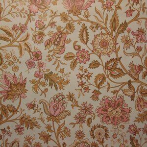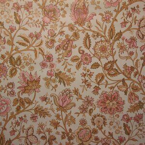 Vintage 1970s pink, brown and beige floral paisley wallpaper. Approx. 10 meters x 53 cm width. Photos were taken under different indoor lighting conditions. AI photos are an approximation of the size and detail of the pattern. It's purpose is for placement ideas.