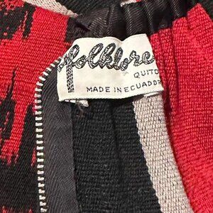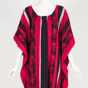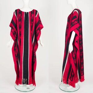 1970s Vintage "Folklore" Ecuador Red & Black Woven Wool Blanket Caftan