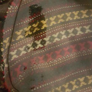 Good condition but does have some tassels missing at the bottom and some pilling on the outer and holes in the lining shown in photos.