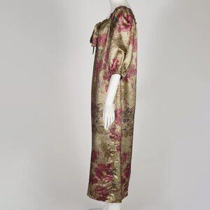 1970s/1980s Vintage Floral Gold Lamé Puff Sleeve Evening Gown Sz L