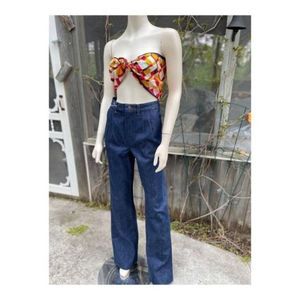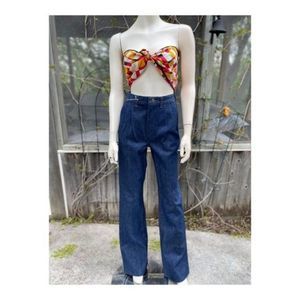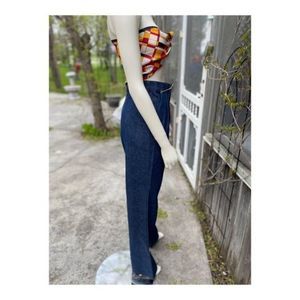 Deadstock 1970s Wrangler High Waist Denim Jeans Pleat front Straight leg Bootcut/flare Dark Wash. Labeled Sz 29 X 34 - also stamped “irregular” however I do not see any un-even or asymmetrical qualities. 100% cotton, no stretch. No funky smells. Stored in pet and smoke free studio.