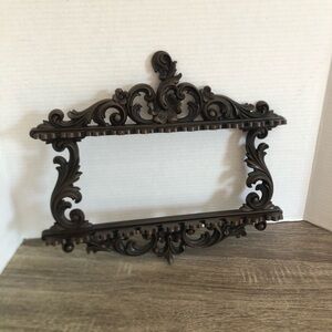 Enhance your home with this elegant ornate wall decor. Featuring a rich brown finish, this piece adds a touch of sophistication to any room. Perfect for displaying small collectible spoons or repurpose into something else! Made from a heavy resin plastic.