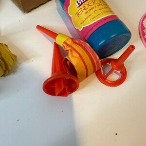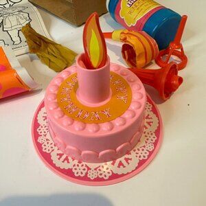 It comes with all accessories but the labels. Birthday hat also fall apart its tassel still in the box but is not attached to the hat. The band from the hat is also missing.