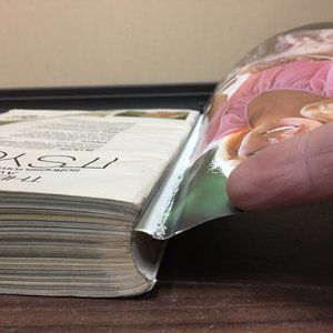 Moisture damage near the binding has wrinkled some pages about .5" from the binding and made some of the pages stiff near the binding. Cover and some pages have partial separation from the binding. Small tear on cover. Some wear on cover, corners and pages. Some mold spots and stains. See Pics.