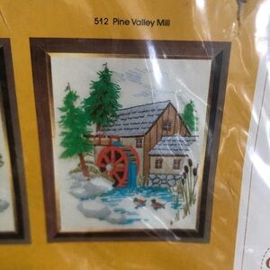 The Creative Circle embroidery kit featuring scenic designs. Includes full kit to make one piece of art. Dated 1979. You can make your own “Pine Valley Mill” piece of art to call your own! This kit includes everything you need!