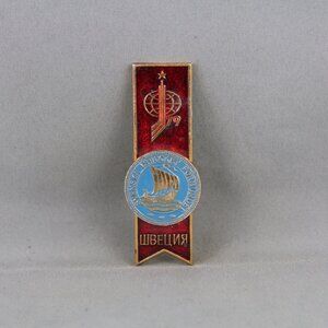 Up for sale is a 1979 World Hockey Championships pin. The pin has a red base colour with gold trim. The pin has the 1979 event logo stamped in the top while the lower portion has a separate section built on which features the team Sweden Hockey logo. What a great addition to any hockey collection.