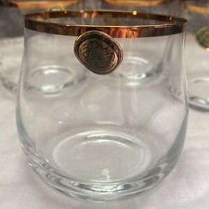 This versatile set of glasses can be used for a Bourbon, Scotch, whiskey, rocks or a stemless wine glass. The gold rim and hand blown body not only makes