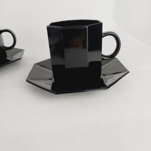 1980'S Arcoroc Octine Black glass octagon Made in France soups bowls mug saucers