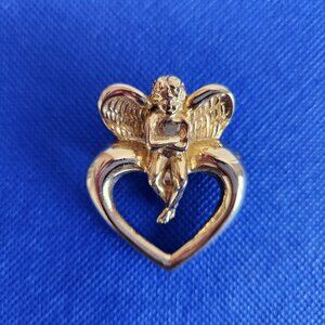 1980-S GIVENCHY SIGNED VINTAGE CUPID AND HEART GOLD TONE BROOCH