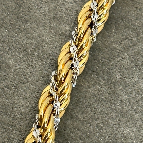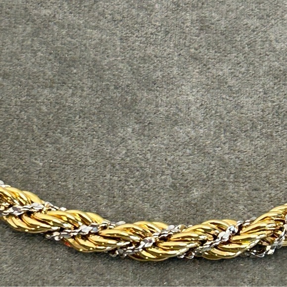 1980S Monet Gold Silver Tone Twisted Rope Necklace Signed Collectible Statement