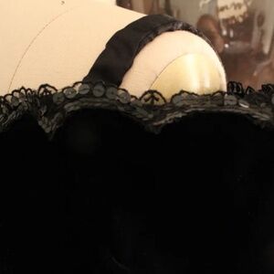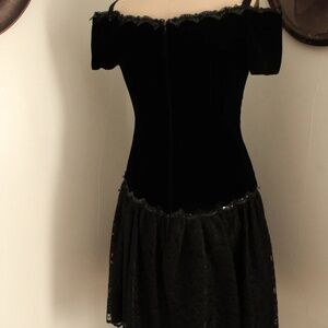 1980's Algo-Ettes Black Velvet Lace and Sequin Trimmed Dress