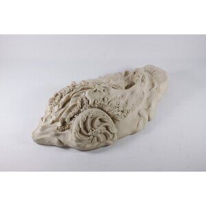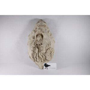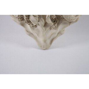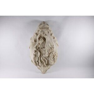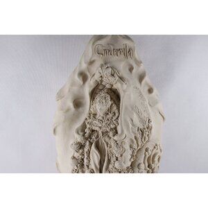 A vintage handmade Cinderella sculpture, meant to be hung on the wall and with a hanging slot in the back. In a slightly beige white tonality, the sculpture has been expertly made, with delicate detailing. Most of the work looks to have been hand done. A very gothic looking Cinderella herself almost looks like she could be starring in the 1980s movie Labyrinth as she emerges from a superbly organic looking pumpkin carriage. Truly imagery worth of the term "Fairytale" with a capital F.