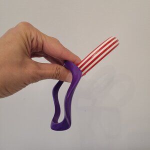 Like new condition. SOLD TOGETHER. Note that I have a very small wrist. One is purple and the other is red and white striped.