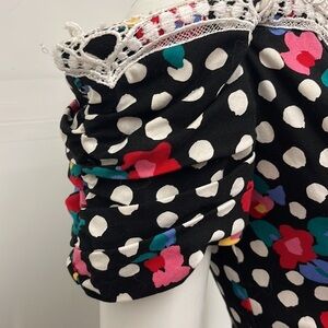 1980s Nu-Mode Rockabilly Crinoline Off-the-Shoulder Polka Dot Flower Twirly Party Dress