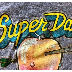 Father’s Day gift for the vintage loving Dad. 1980s Grey T-shirt Glitter Rubbery Graphic: SUPER DAD!