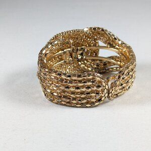 1980s chunky gold tone hinged metal mesh knot cuff bracelet