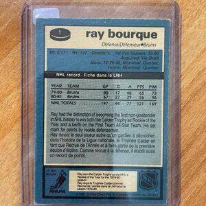 1981-82 O-Pee-Chee #1 Ray Bourque Boston Bruins. Current Beckett price is $50.00 US.