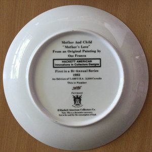 1982 OZZ FRANCA Collector Plate, Mother and Child Series “MOTHER'S LOVE”