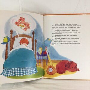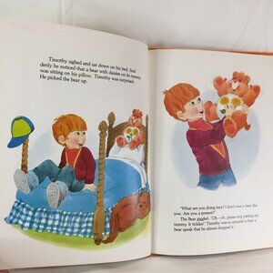 A tale from the Care Bears. The Trouble With Timothy. The story by Margaret Ludlow and the pictures by Tom Cooke. It is pre-owned with wear to the edges. It is nice and bright and the pages are in excellent clean condition.