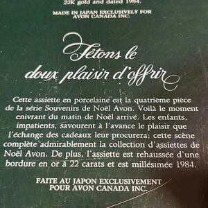 Fourth edition vintage 1984 CHRISTMAS MEMORIES celebrating the JOY of GIVING . Made in Japan exclusively . DECORATIVE PURPOSES ONLY. Not to serve food . These have been only used for display. No chips of any kinds. They look in immaculate condition. No chips. No cracks. No discoloration . Even in the back of the plate .but please take a close up look and zoom in . It does come with the box. The box is not in perfect shape. Lots of usage and discoloration on the box only .