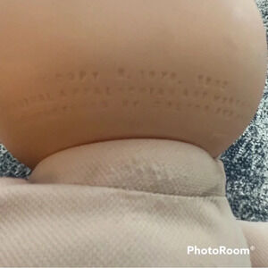 From 1985, can identify the year with the colour of handwriting on the bum. This one is pink. Brown eyes, dimples, and open mouth for pacifier. Comes with original outfit. Light green with elephant. Some marks on back of head, and pilling on the back from velcro. Super cute and looking for new home 😊