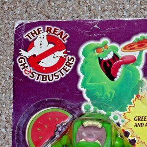 Figure is brand new, factory sealed. Be advised that the cardback is in rough shape: it has numerous creases, corner abrasions, old store sticker residue attached and is somewhat discolored. The bubble is dented by Slimer's face and there is a crack on the bottom of the bubble. The packaging has numerous additional imperfections. Hard to find Kenner UK packaging variant. What you see is what you get. Item is sold AS IS.