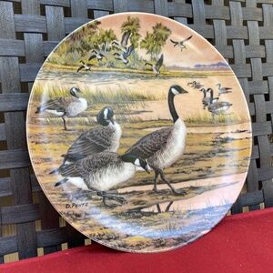 Tags: collectible ceramic bone china dish art artist painted pottery porcelain wildlife canada goose canadian geese swans birds woodland decor decorative antique 70s 80s mid century animals cottagecore folk folksy