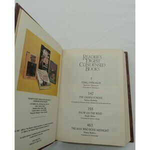Delve into a world of captivating stories with the 1988 Reader's Digest Condensed First Edition Hardcover. This vintage collection showcases a beautifully bound leather volume, adorned with gilt detailing that exudes a classic charm. Each tale within is crafted by renowned authors, promising an enriching reading experience.The book's pages are a testament to the craftsmanship of a bygone era, with English text that invites readers to immerse themselves in the narrative. Perfect for both collectors and literary enthusiasts, this edition is a treasure trove of fiction that promises to be a noteworthy addition to any library.