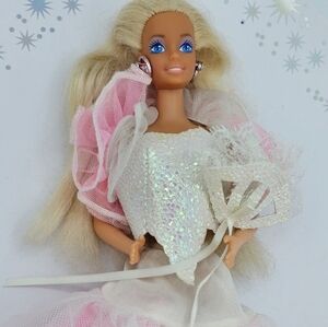 **missing her ring & ribbons for shoes & has some fraying on the end of the dress under the tulle**