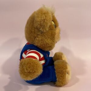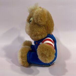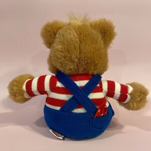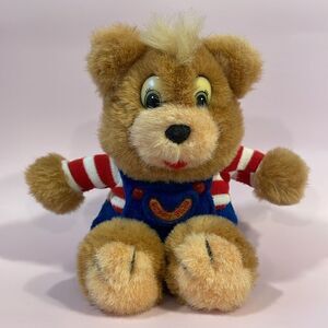 1989 GUND Happy Bear Stuffed Animal Teddy Plush Blue Overalls 9" Vintage EUC