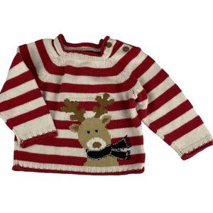 1989 Place Red & White Striped Christmas Reindeer Knit Sweater 12 M…